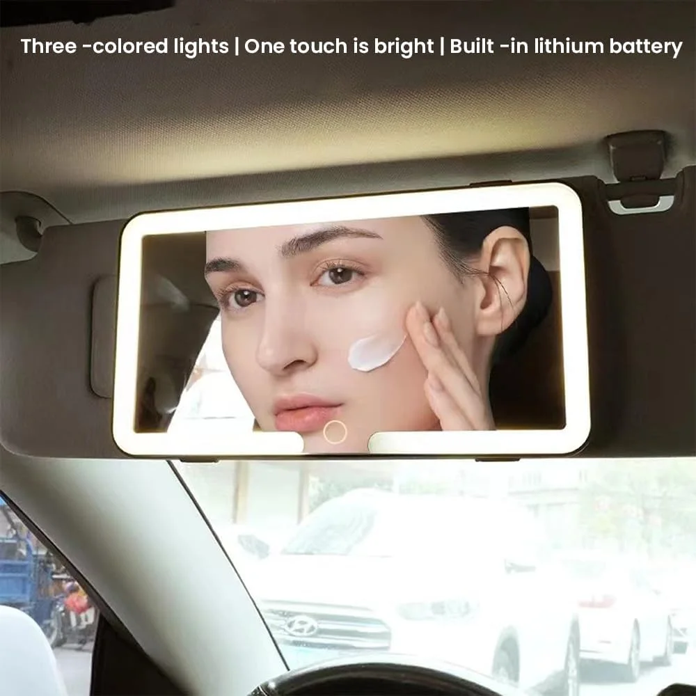 Miroir de Maquillage LED pour Voiture avec Écran Tactile et Ajustement à Trois Niveaux Bandes lumineuses rectangulaires :